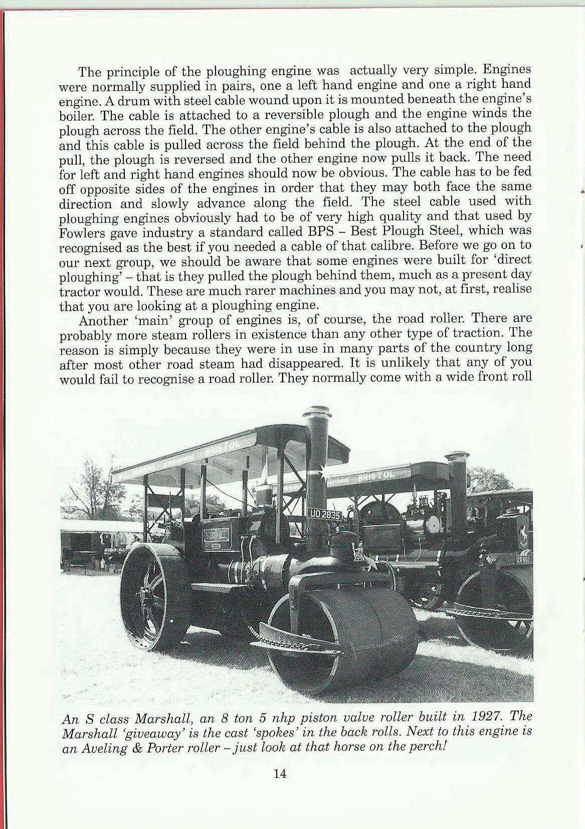 First of all there are the ploughing engines. These, usually large, machines are normally easy to spot due to their size and the winding drum beneath their boilers. Often at the bigger rallies you should be lucky enough to see these engines at work. Everything about these engines is built bigger and stronger than other types. This n1akes them less easy to use on the roads, especially ones