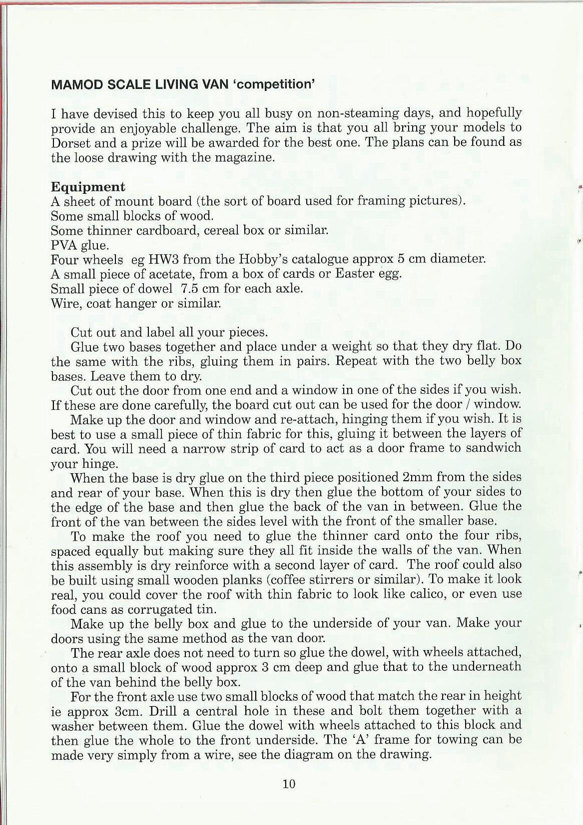 I have devised this to keep you all busy on non-steaming days, and hopefully provide an enjoyable challenge. The aim is that you all bring your models to Dorset and a prize will be awarded for the best one. The plans can be found as the loose drawing with the magazine.
