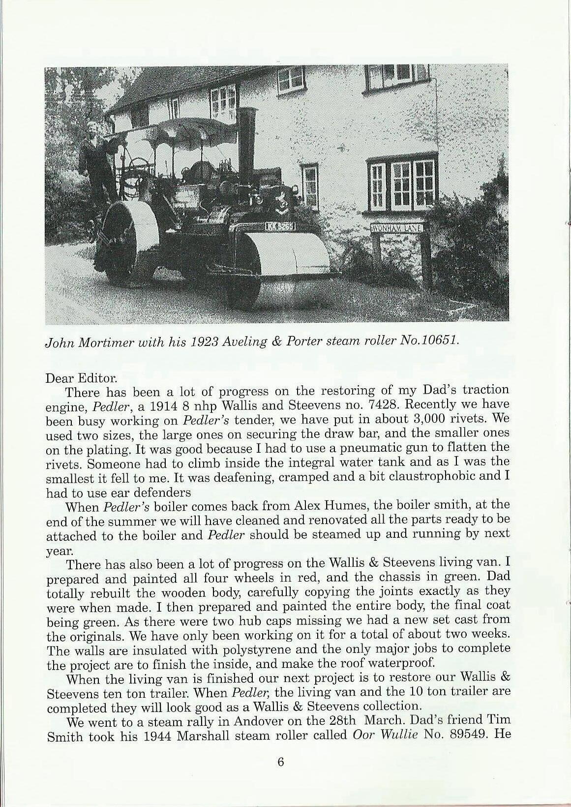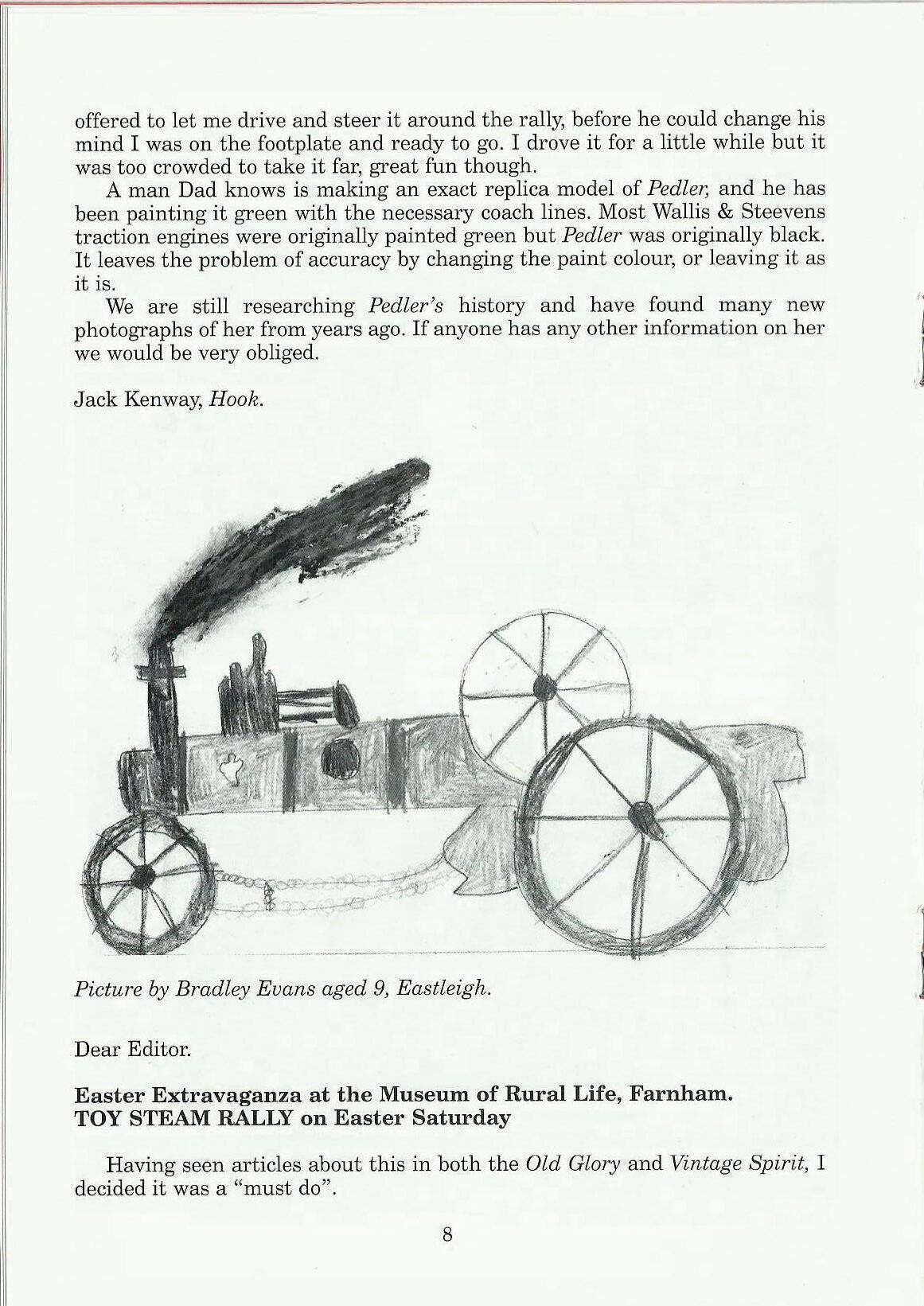 By the time you read this the first of this year's driving days will have happened - I hope that those of you lucky enough to be there enjoyed it. I have had several phone calls about the fact that Klondyke Mill is not on the list. I'm sorry about this but we have run a course there every year since the start and the engine owners felt that they had done their bit. Also Klondyke Mill isn't really big enough for 4 or 5 engines to be moving at the same time. What we need now are new venues in the Midlands and the North. Do you know of anywhere? We need somewhere with a bit of private ground, preferably with hard areas, and a few engines either on site or nearby. If you can think of anywhere, get in touch - we'll do the rest!