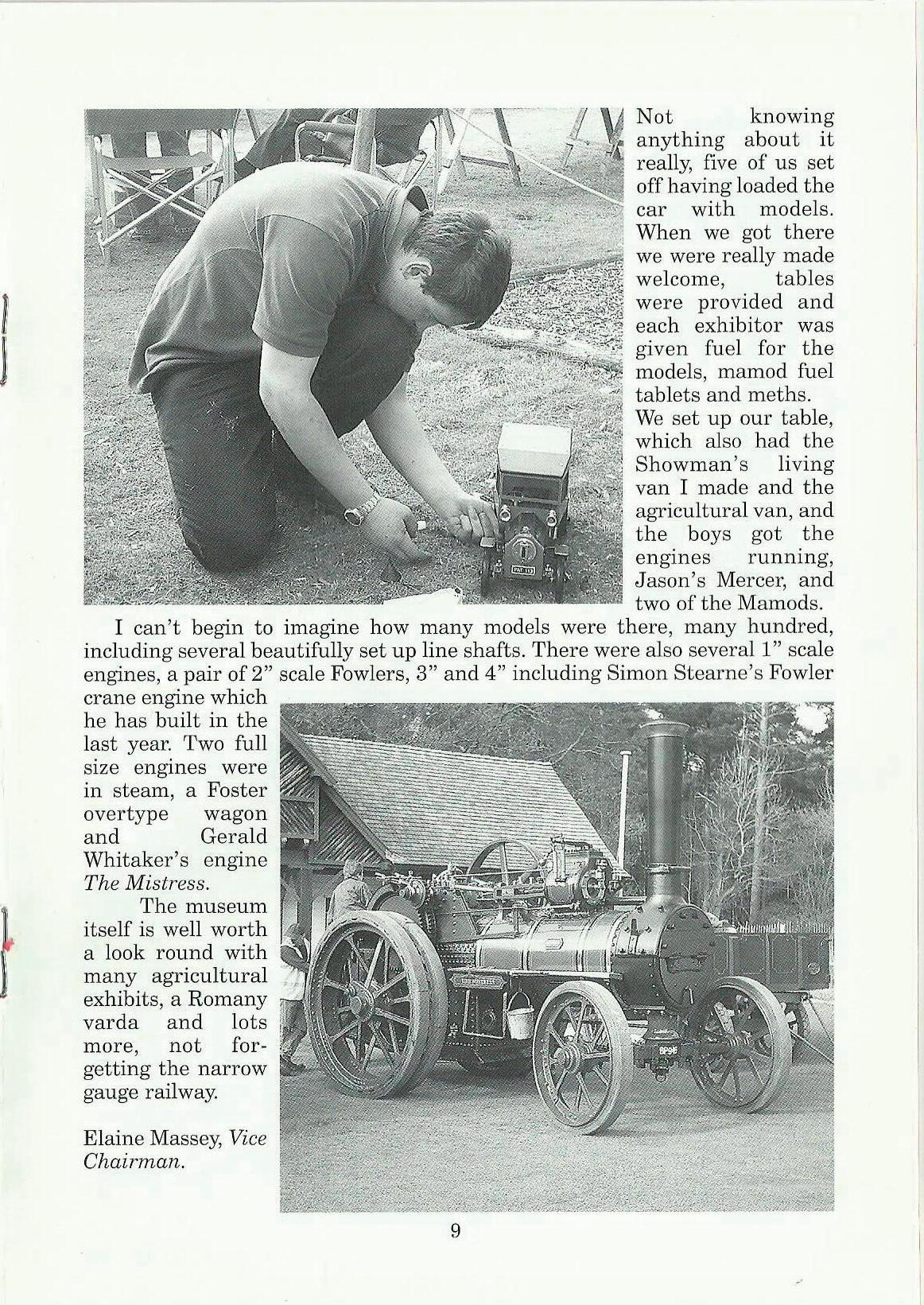 I can't begin to imagine how n1any models were there, many hundred, including several beautifully set up line shafts. There were also several 1" scale engines, a pair of 2" scale Fowlers, 3" and 4" including Simon Stearne's Fowler crane engine which he has built in the last year. 'I'wo full . size eng1nes were in steam, a Foster overtype wagon and Gerald Whitaker's engine The Mistress. The museum itself is well worth a look round with many agricultural exhibits, a Romany varda and lots more, not forgetting the narrow gauge railway.