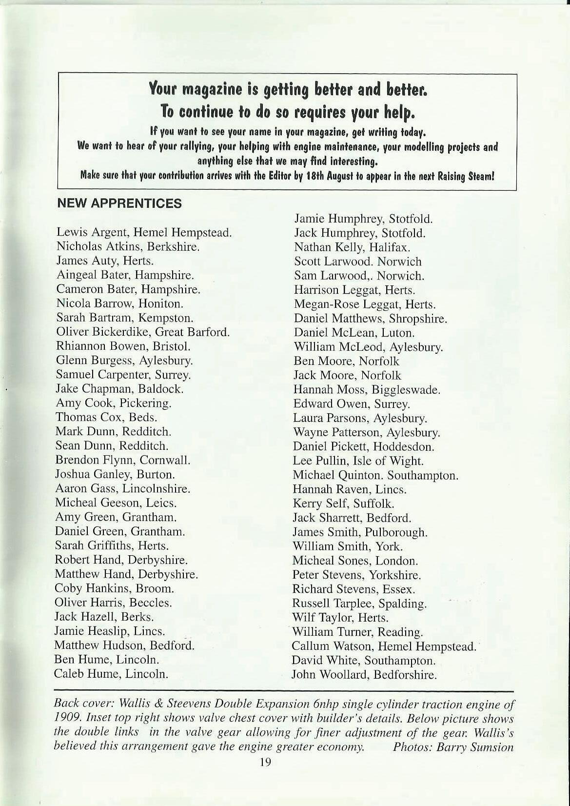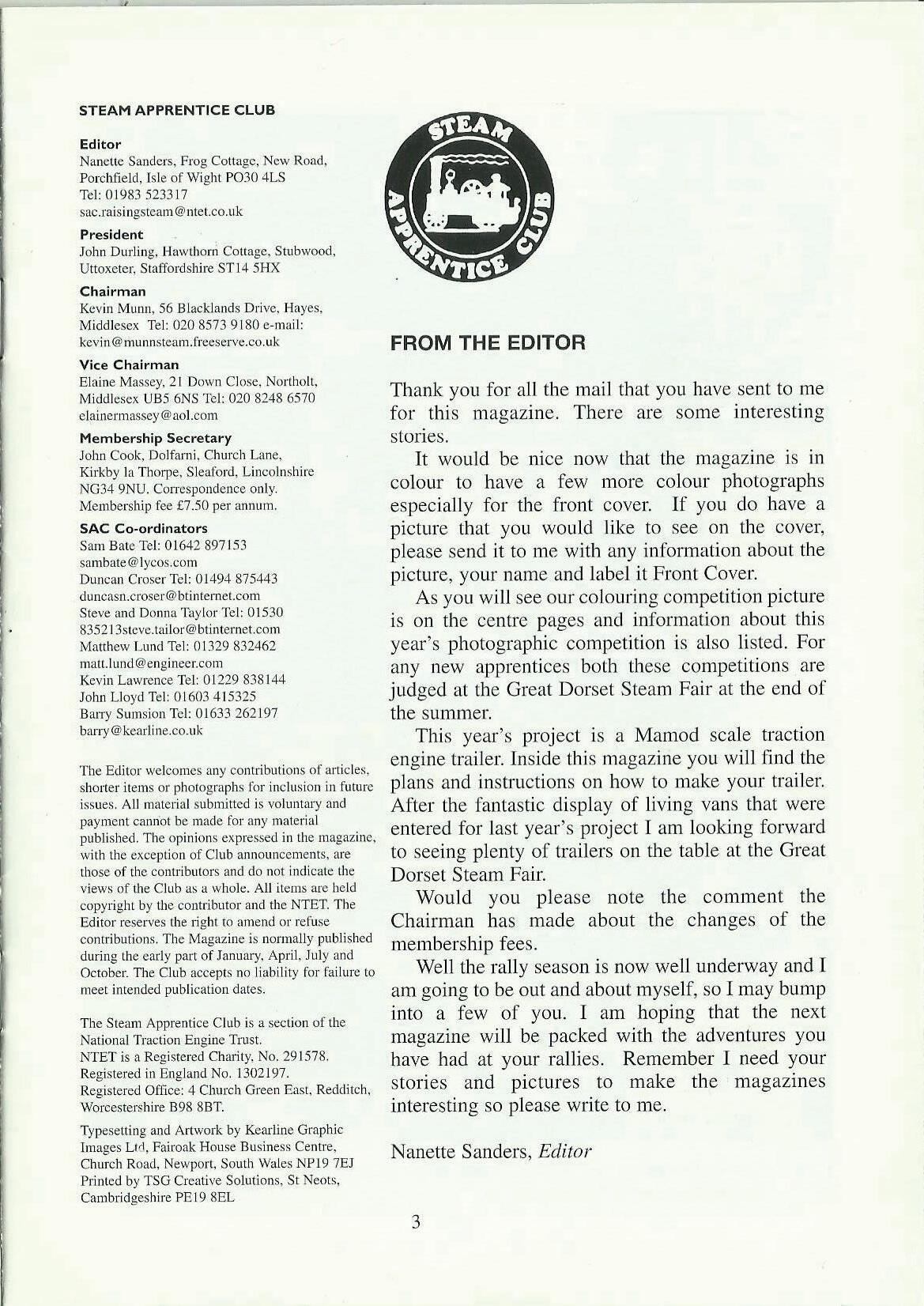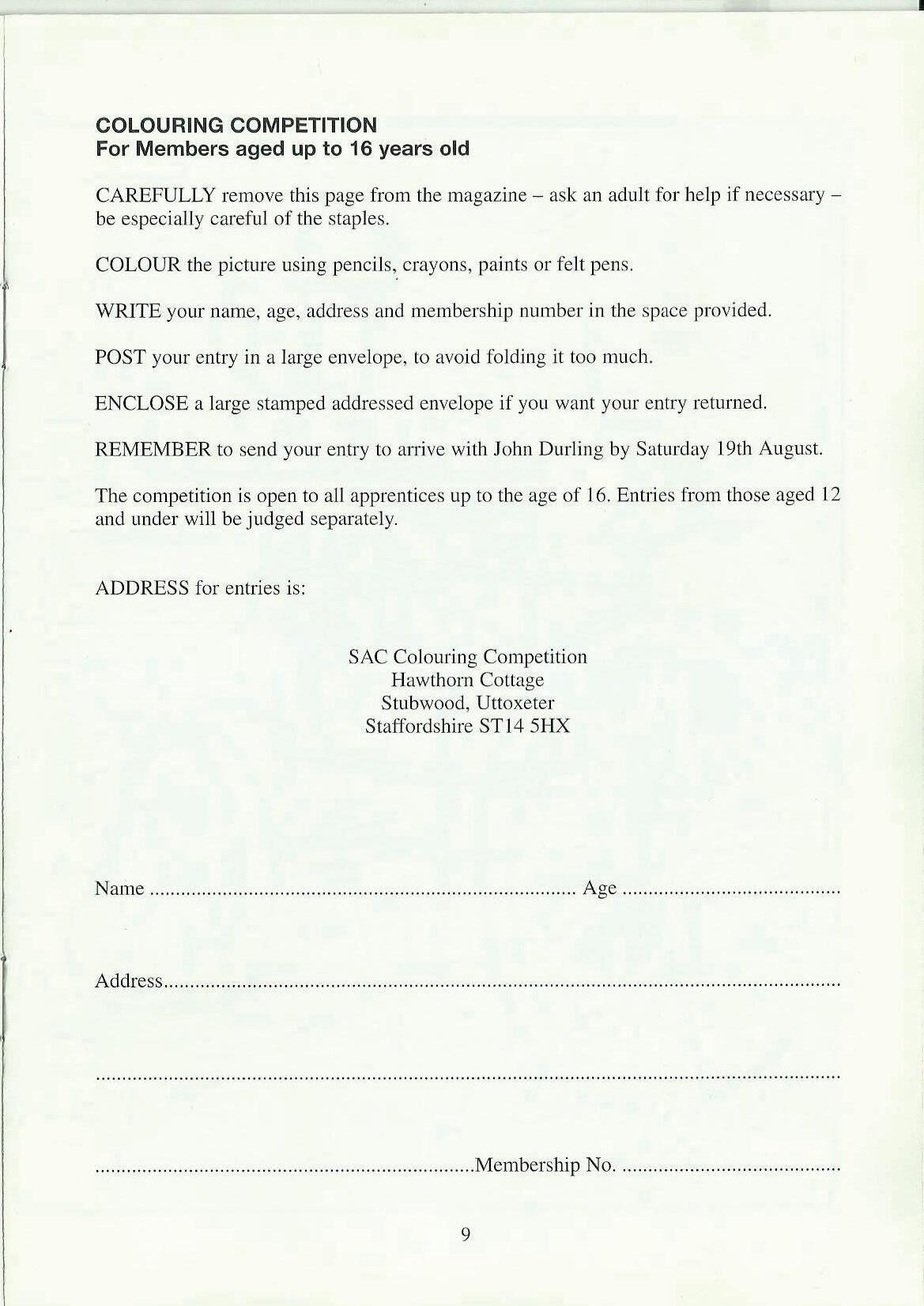 As you will see our colouring competition picture is on the centre pages and information about this year's photographic competition is also listed. For any new apprentices both these competitions are judged at the Great Dorset Steam Fair at the end of the summer.