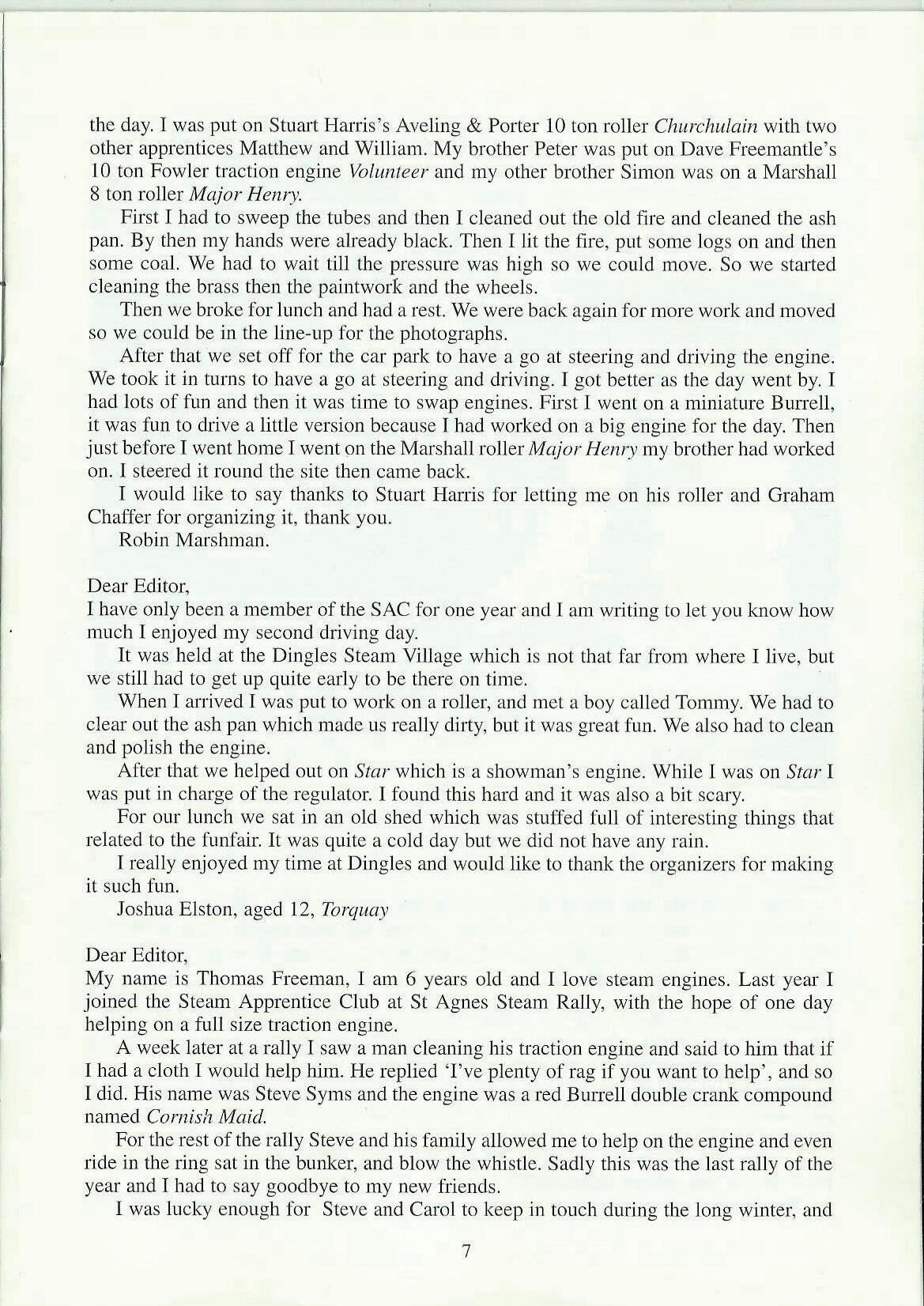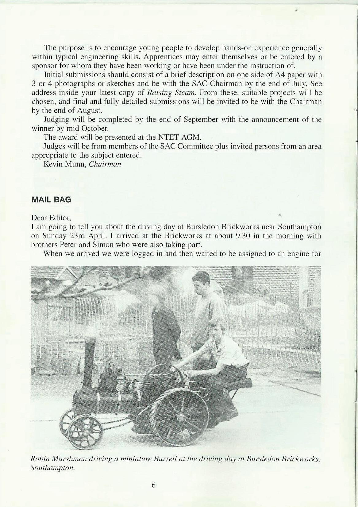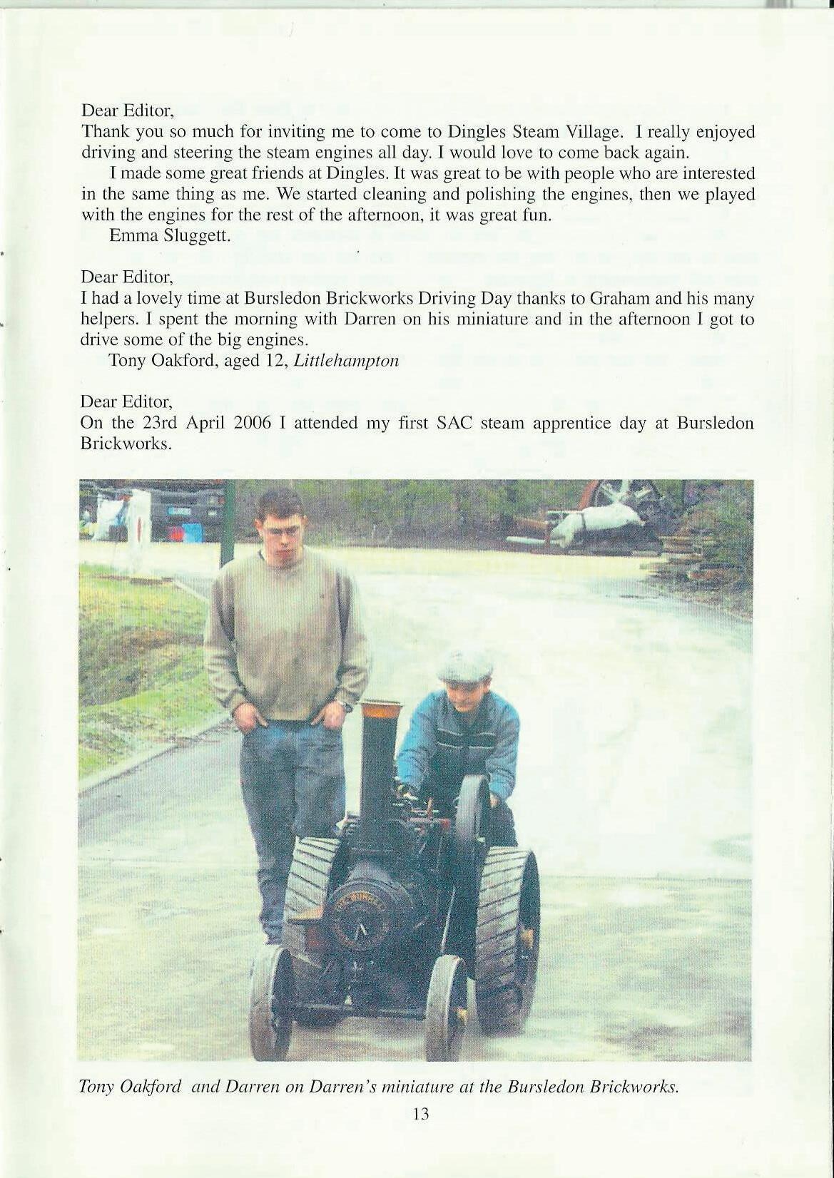 As you will see our colouring competition picture is on the centre pages and information about this year's photographic competition is also listed. For any new apprentices both these competitions are judged at the Great Dorset Steam Fair at the end of the summer.
