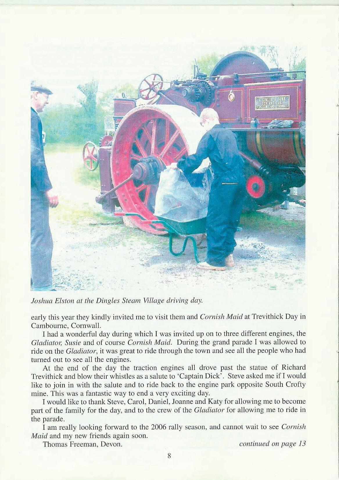 My name is Thomas Freeman, I am 6 years old and I love steam engines. Last year I joined the Steam Apprentice Club at St Agnes Steam Rally, with the hope of one day helping on a full size traction engine.