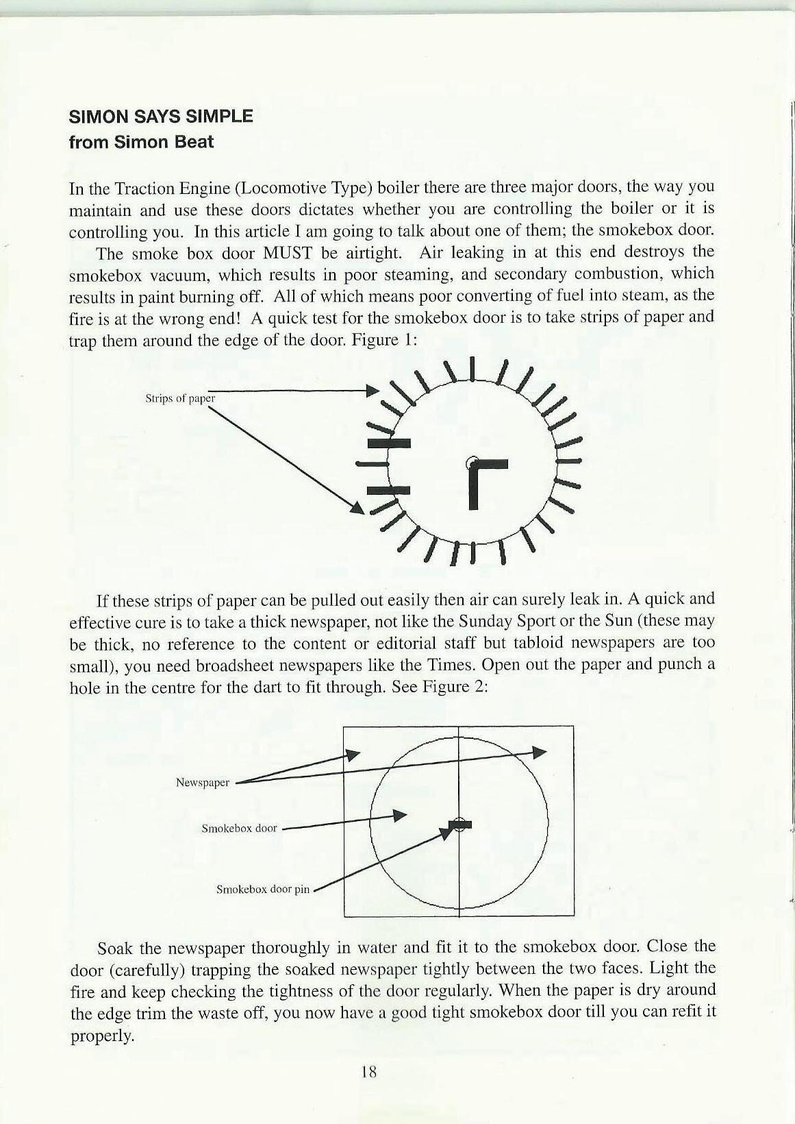 In the Traction Engine (Locomotive Type) boiler there are three major doors, the way you maintain and use these doors dictates whether you ru:e controlling the boiler or it is controlling you. In this article I am going to talk about one of them; the smokebox door. The smoke box door MUST be airtight. Air leaking in at this end destroys the smokebox vacuum, which results in poor steaming, and secondary combustion, which results in paint burning off. All of which means poor converting of fuel into steam, as the fire is at the wrong end! A quick test for the smokebox door is to take strips of paper and trap them around the edge of the door. Figure 1: