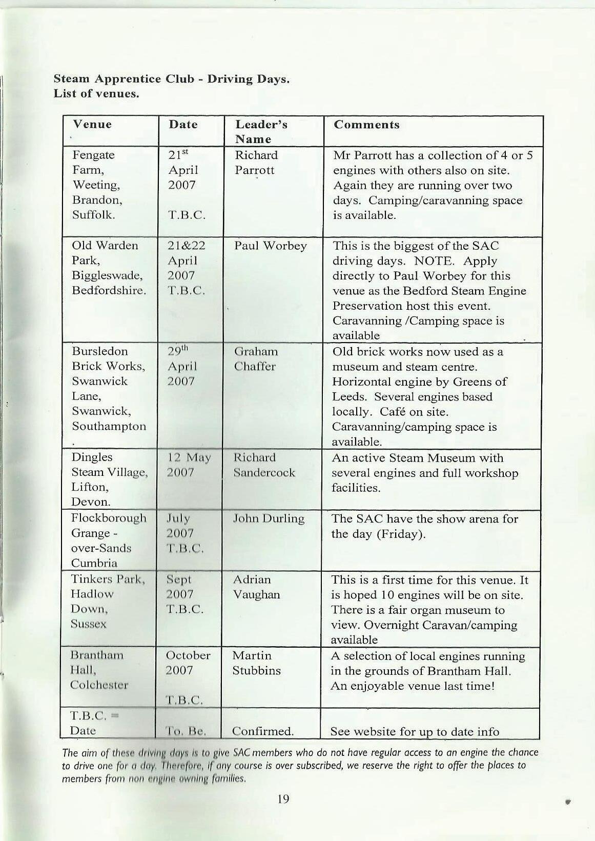 This is the biggest of the SAC driving days. NOTE. Apply directly to Paul Worbey for this venue as the Bedford Steam Engine Preservation host this event. Caravanning /Camping space is available