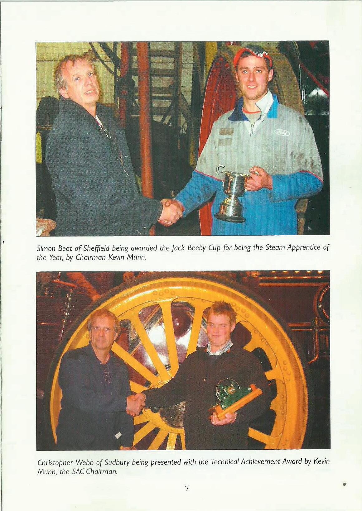 For the best technical achievement by an apprentice in the current year. Areas of achievement may include: work on full size engines, modelling, model engineering or any other appropriate steam related subject (bearing in mind that we are essentially a road steam organisation.