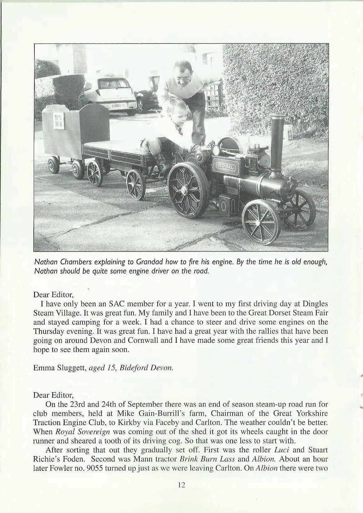 I have only been an SAC member for a year. I went to my first driving day at Dingles Steam Village. It was great fun. My family and I have been to the Great Dorset Steam Fair and stayed camping for a week. I had a chance to steer and drive some engines on the TJ1ursday evening. It was great fun. I have had a great year with the rallies that have been going on around Devon and Cornwall and I have made some great friends this year and I hope to see them again soon.