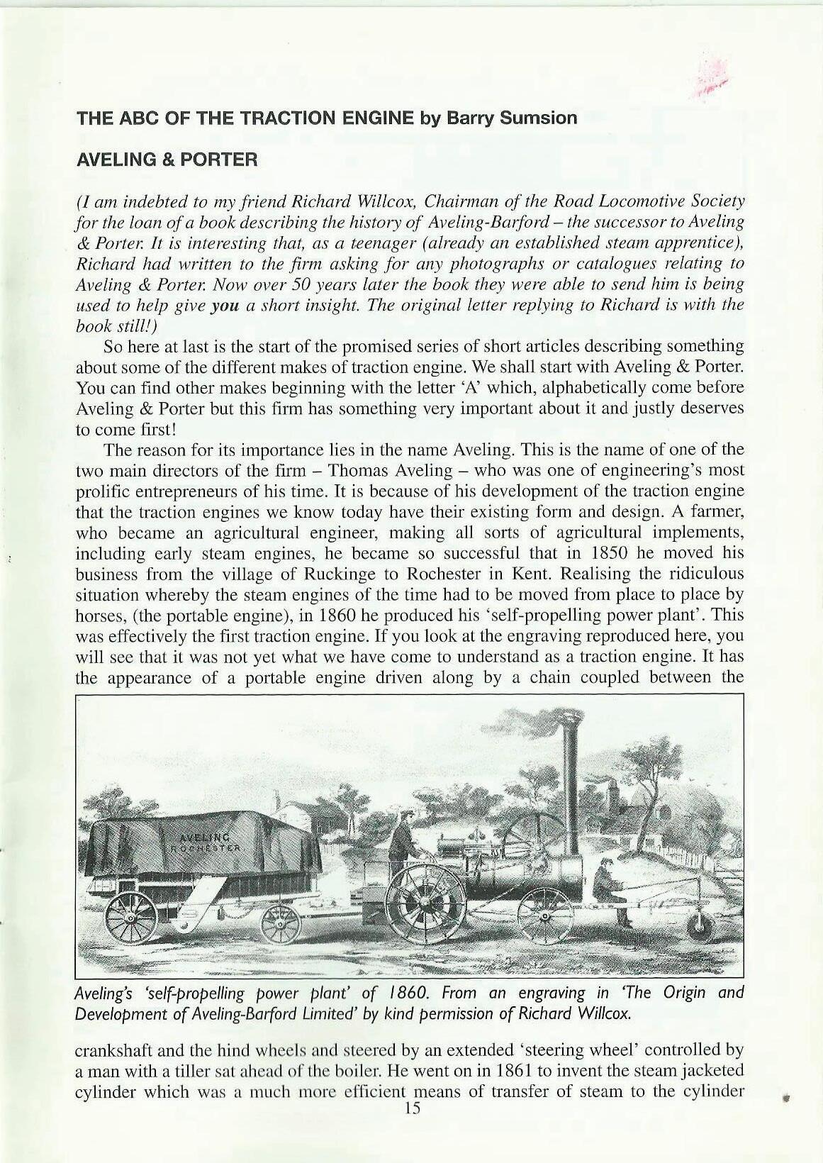 (I am indebted to my friend Richard Willcox, Chainnan of the Road Locomotive Society for the loan ofa book describing the history of Aveling-Barford- the successor to Aveling & Porter. lt is interesting that, as a t,eenager (already an established steam apprentice), Richard had written to the firm asking for any photographs or catalogues relating to Aveling & Porter. Now over 50 years later the book they were able to send him is being used to help give you a short insight. The original letter replying to Richard is with the book still!)