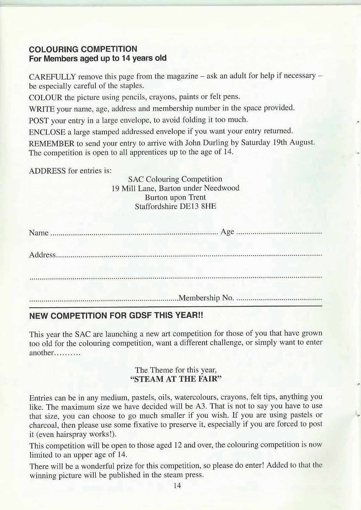 Back to this magazine issue. There i.s of course the coloming competition across the centre pages, this will be judged at the GDSF. We have a new model for you to spend your summer holidays making, this will also be judged at the GDSF. We must not forget the photographic competition, I was very impressed with the quality of the photo's I saw pinned to the board last year, you all did really well.