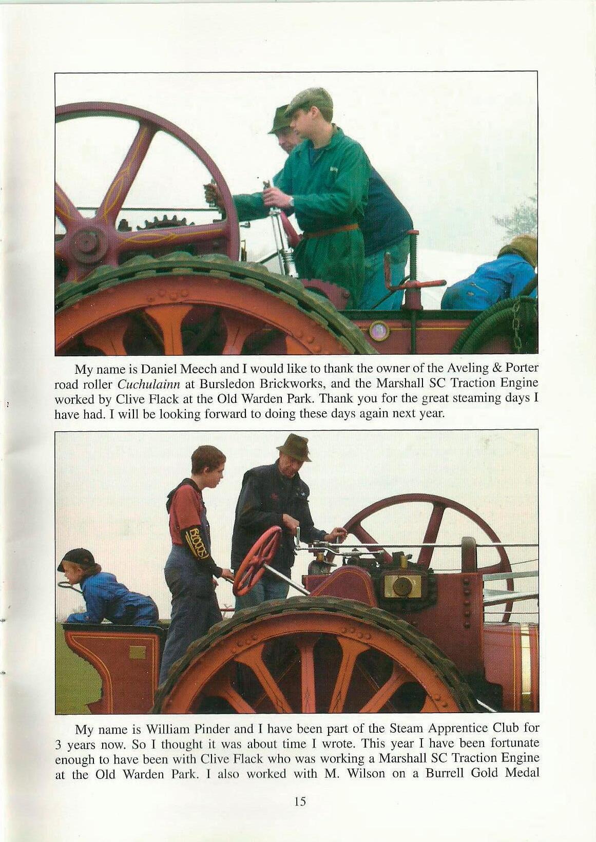 My name is William Pinder and I have been part of the Steam Apprentice Club for 3 years now. So I thought it was about time I wrote. This year I have been fortunate enough to have been with Clive Flack who was working a Marshall SC Traction Engine at the Old Warden Park. f also worked with M. Wilson on a Bun-ell Gold Medal