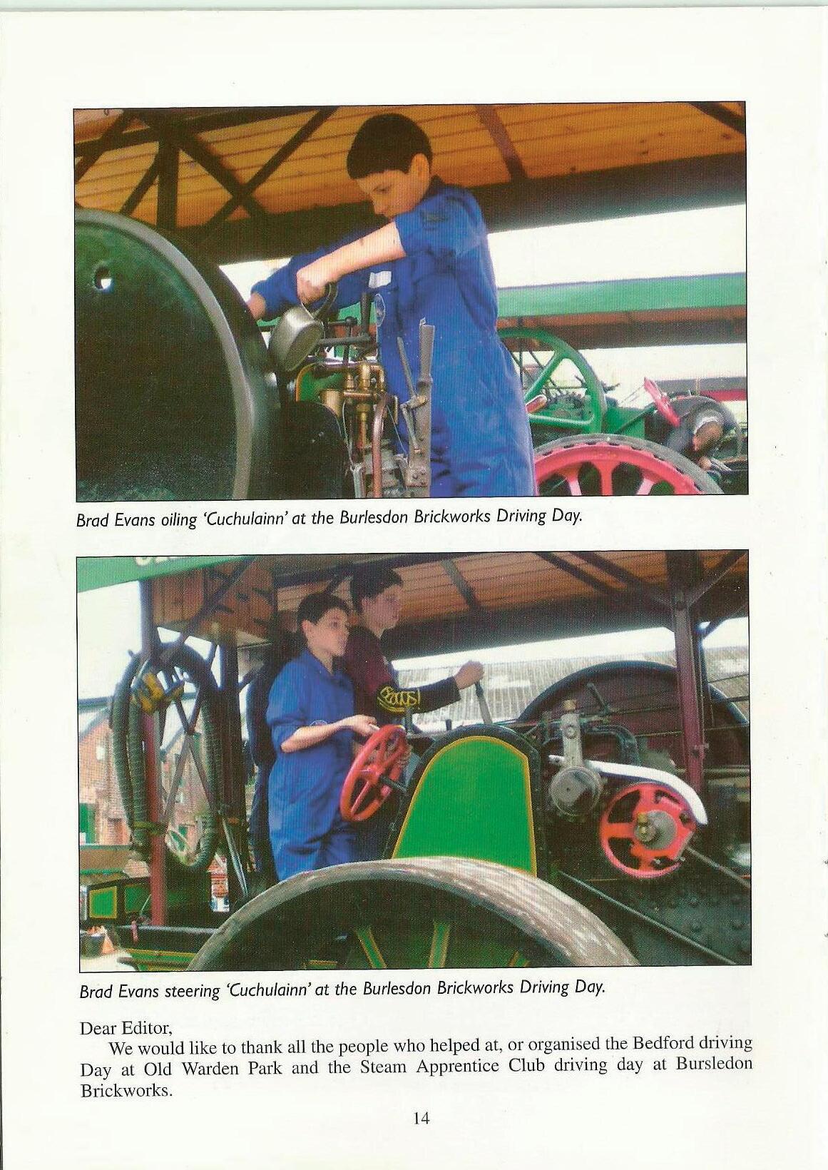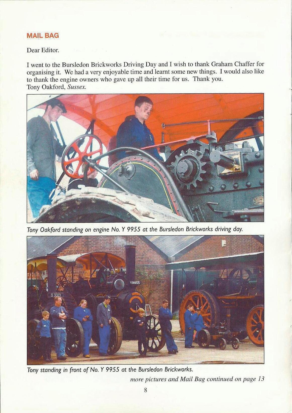 I went to the Burs]edon B1ickworks Driving Day and I wish to thank Graham Chaffer for organising it. We had a very enjoyable time and learnt some new things. I would also like to thank the engine owners who gave up all their time for us. Thank you.