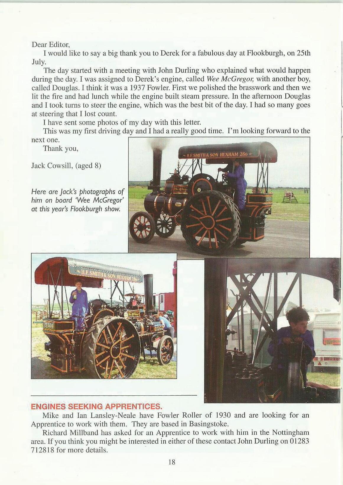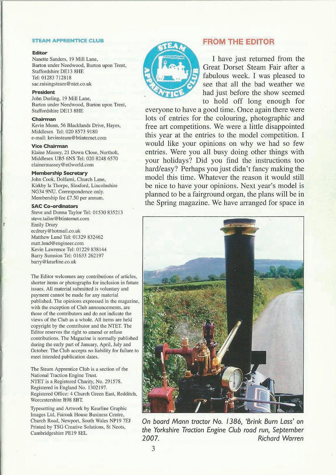 The Steam Apprentice Club is a section of the National Traction Engine Trust. NTET is a Registered Charity, No. 291578. Registered in England No. 1302197. Registered Office: 4 Church Green East, Redditch, Worcestershire '898 8BT.