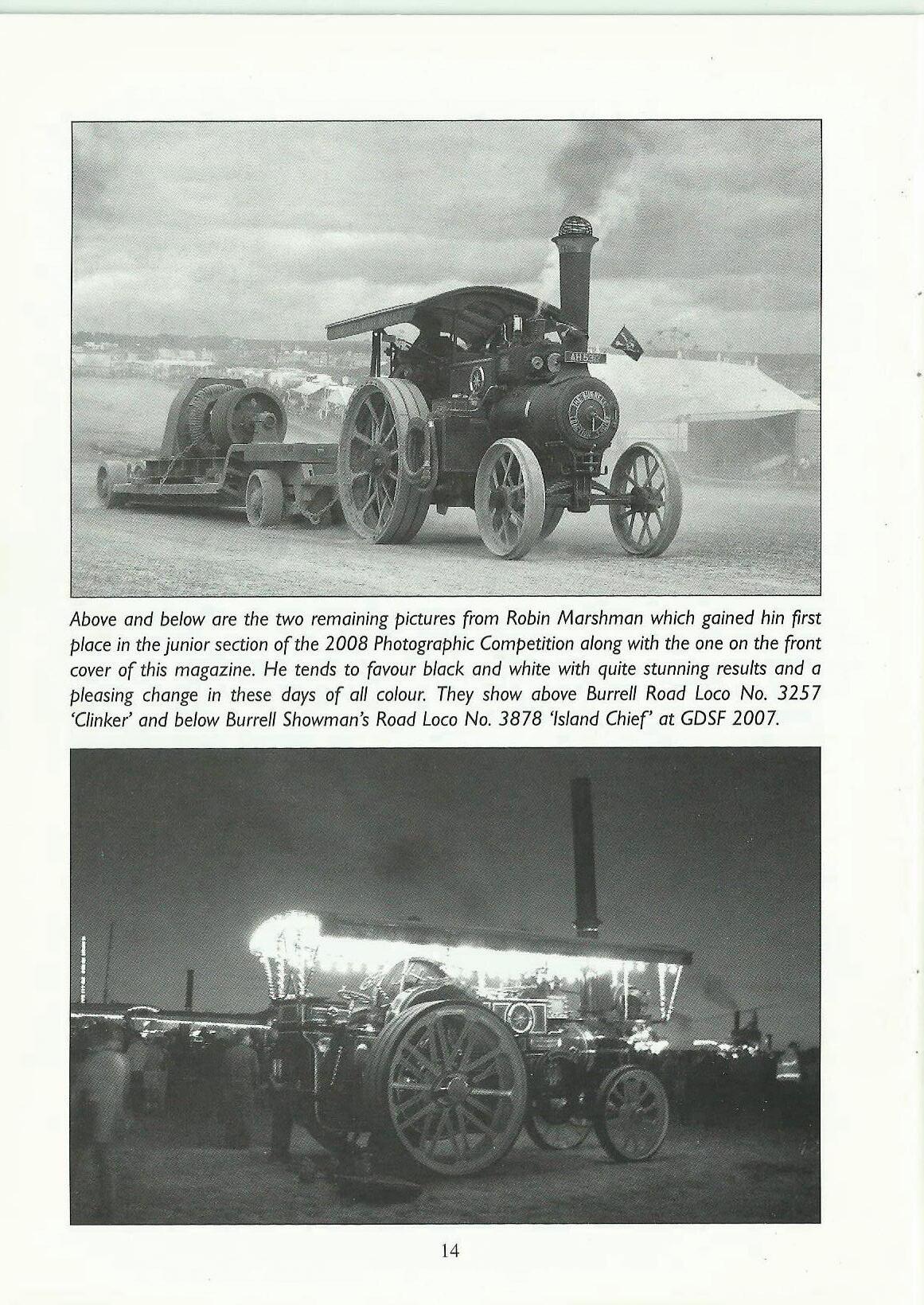 Above and below are the two remaining pictures from Robin Marshman which gained hin first place in the junior sectionof the 2008 PhotographicCompetition along with the one on the front cover of this magazine. He tends to favour black and white with quite stunning results and a pleasing change in these days of all colour. They show above Burrell Road Loco No. 3 25 7 'Clinker' and below Burrell Showman'sRoad Loco No. 3878 'Island Chief' at GDSF2007.