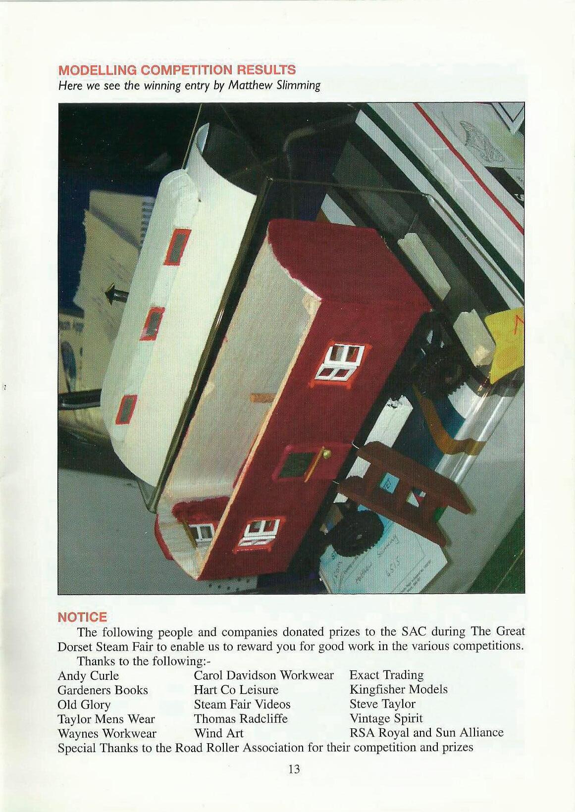the model tent at the Great Dorset Steam Fair to display your work. I have included some of the winning entries in this magazine for you to see.