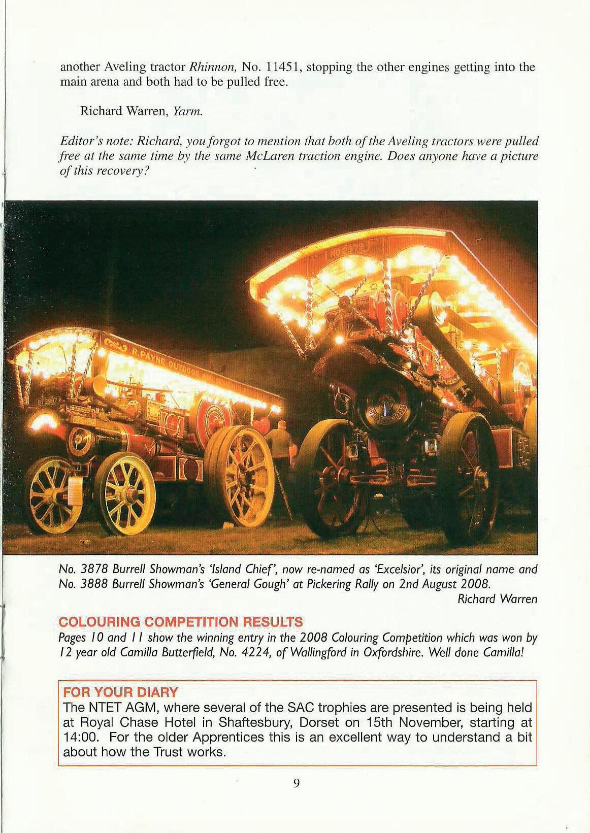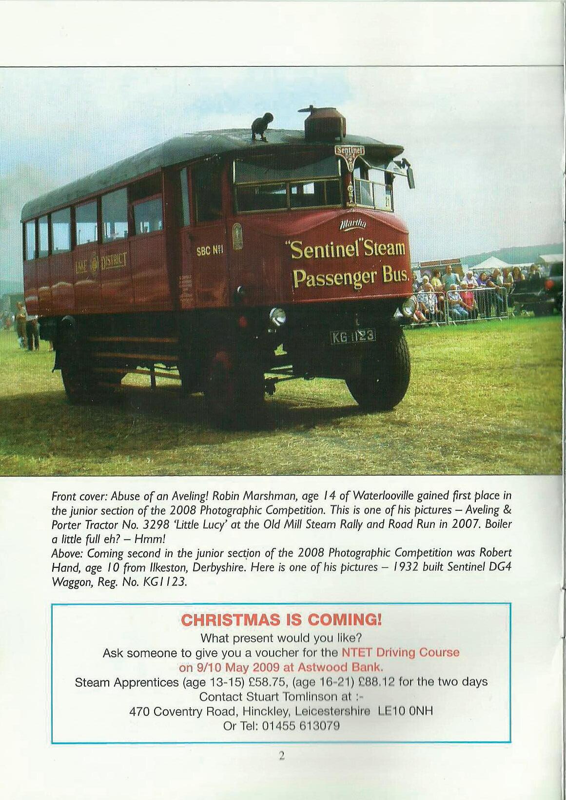 Front cover:Abuse ofan Aveling!RobinMarshman, age 14 ofWaterloovillegained first place in the junior section ofthe 2 008 PhotographicCompetition.This is one ofhis pictures - Ave/ing& PorterTractorNo. 3298 'Little Lucy'at the Old Mill SteamRallyand RoadRunin 2007. Boiler a little full eh? - Hmm!