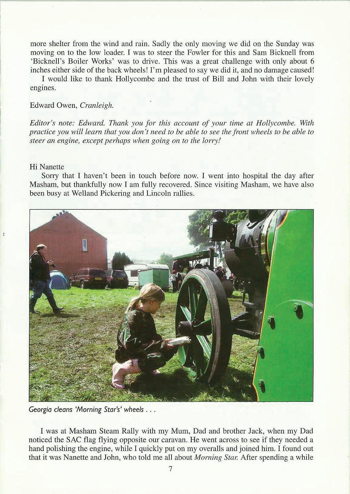 I was at Masham Steam Rally with my Mum, Dad and brother Jack, when my Dad noticed the SAC flag flying opposite our caravan. He went across to see if they needed a hand polishing the engine, while I quickly put on my overalls and joined him. I found out that it was Nanette and John, who told me all about Morning Star. After spending a while