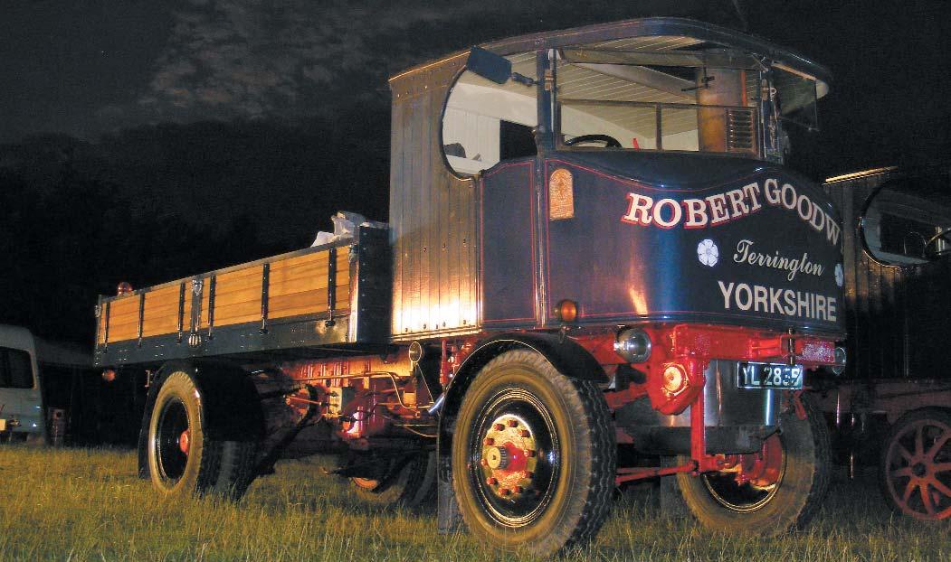 One of the highlights of Saturday morning was a ride in the cab of the newly restored Sentinel S4 steam wagon in ‘Castle’ livery. The top-fed boiler was difficult to fire when stationary and almost impossible when on the move. A new and very exciting experience. It was a wonderfully warm summer evening when we arrived at the Beer/Party tent. I took the Garrett and parked it between a showman’s engine and an Aveling and Porter tractor. The latter turned out to be John Durling’s (our president) who, it transpired, was there with his wife of a week Nanette (they were on honeymoon, now there’s commitment). Nanette is the Editor of this magazine. We talked and drank, nothing stronger than a shandy for me, until ‘quite late’. When lightning flashes lit the sky, thunder clapped and the inevitable large rain drops started to sizzle and hiss on the engine, we made a dash in the dark to base. The fire was raked through the bars, the engine sheeted over and we retired to the relative comfort of the caravan (one of my Dad’s eBay moments but that’s another story) for hot drinks and a good night’s sleep.