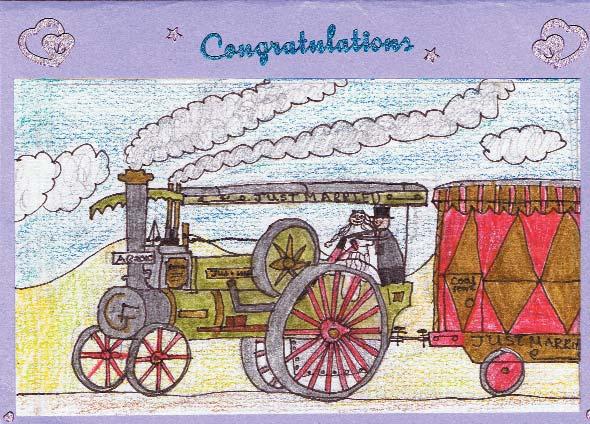 Hi everyone, first of all I would like to thank those of you that wished us well on our wedding day on June 20th. The day went really well, it even stopped raining just in time for me to arrive at the venue. We were pleased to see many of our steam friends there as well as our families. We even had coal on the tables as the centre decorations. We must thank Chris Forbes for his lovely card received on the morning of our wedding; I only shed a small tear. I hope that you all like it too.