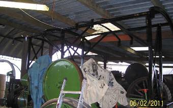 Morni ng S ta r , o r sim ply N o. 11 486 as sh e was kn own th en , left the Ro che st er factory wit h a h al f len gth ca nopy (Ave lin g & Po rt er called it a half timbe r awning ) but somewher e al on g t he way this was lo st. I have a picture t aken at the Woburn Sa nds r ally in 1957 w hi ch st il l sh ows the c an opy bu t by the ti me Dad b ou gh t h er in 1979 it h ad gone, along wi th all the iron wor k. Th erefo re I had to start from scratch. I go t c opies of th e genera l a rr an ge me nt dr aw ing fr om the Li ncoln Archives wh ich s howe d me wh at it should loo k li ke, th e size s of the ste el sectio ns and the overal l d im ension s. Iā m rea lly not su re why Avel i ng & Por te r thoug ht it needed quit e so mu ch steel wor k! Th e finish ed product mu st wei gh nea rly ha lf a to n! The covering is a mo dern t ake on the tra ditiona l calic o and wh it e le ad . Iāve u sed a me diu m grad e un -b leached canvas a nd exter ior white glo ss. This g ive s a re asonable loo k a nd us es materi al s th at can be easily fo und. It also mea ns th at r e-p ai nt ing is fairly simp le