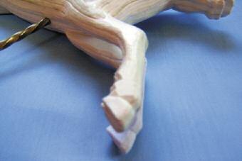 Lastly, add the mane and tail made from thick cotton, wool or thin string. This can be wetted with glue and made to look like a carved mane with a little effort. Lastly glue in the kebab stick so that your horse can be stood up. If you want to give this the appearance of twisted brass then glue on a length of cotton in a spiral and paint it gold.