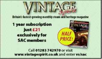 t he S AC is sa yi ng a t www fac e book c om/s team ap pren ticec l ub John an d I h ave ha d a very g ood rall y s easo n; m y new task was to sta rt towing o ur newish caravan . Havin g n eve r t owe d befo re I was very nervou s, you will be ple a se d t o know that I ma na ge d to m iss everyt hi ng , there is n ot on e scratch . G oing bac kwa rds i s a different m att er t ho ugh, ne ed s ome pract ice w it h that o ne. M y d au ghte r Liz even had t o d emolish ou r l ovely b rick ga te post s wi th a sledg e h a mm er to ena ble us to g e t the caravan on th e d rive, s ec re tly I t hink sh e really enjoyed hers elf for a few ho urs . W he n John came h o me fro m wor k it t ook h im a few min utes to realize w ha t was miss ing Pl ease kee p y ou r st or ie s com ing in a s I do e n j oy re ading you r a rti cles and try ing to get them i n pr in t for o ther s to e njoy.