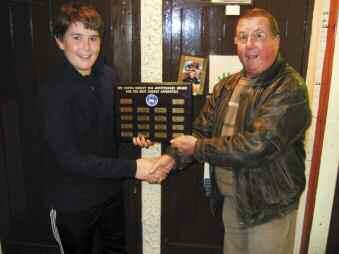 Lewis Mason receiving the Sylvia Dudley Award for the Best Dor set Apprentice