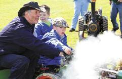 Toward s t he en d of t he af te rnoon , Pau l asked Mu m and Dad if they’d eve r driven a n engine. W he n they sa id ‘ n o’ he sa id they co uld h ave a go ! H e sh owe d the m how to use th e reg ul at or an d the n they h ad a go roun d t he yard with Paul. Th ey h aven't s toppe d grinn in g ye t. ..