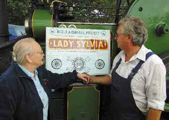 We had hoped that Sylvia could be at the official launch at the Great Dorset Steam Fair, but this was not possible. Instead we organised a quiet unveiling at the Bedford Club’s rally at Old Warden. In order for someone to carry out a naming ceremony you need something to unveil and, as we don’t yet have the engine ready, Nick Bosworth created the name board you see in these pictures. Before she actually pulled the covers off Sylvia had no idea what was on the board; and yes there were a few tears
