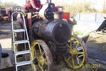 Last year in November, Nan and I went to the Bedford Club’s annual dinner. The dinner was as good as always and afterwards we got talking to John Saunders about various things and he told us about the latest engine to join his collection; a very early Wallis and Steevens 3 ton tractor. This little engine had been stored away in a barn near Kings Lynn in Norfolk for nearly 50 years and was now in John’s yard near Stotfold. His two Grandsons, Alex and Harrison Haslett-Saunders had been given the chance to work on it. John is keen that these two boys do as much as possible on this restoration. The following day we called in to see this new toy, and meet Alex and Harrison.