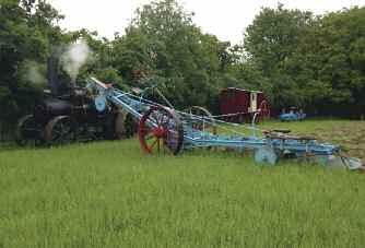 has one engine working at the present time, so another was needed to pull the plough back up the field, the nearest available for that day was the beeby diesel conversion owned by Basil Gibbons. A lunch of sheep’s head stew (I didn’t try it!!) was prepared for the bikers and the crew, apparently a traditional living van dish... The day before, we took all of the tackle into Roberts 10 acre field out the back of the farm, conditions weren’t ideal for ploughing as the field was fairly wet and covered in long grass.