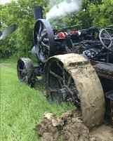Soon the bikers and film crew left, and we then had the task of extracting the engines from the mud. By now my engine had sunk to its tender even with spuds on Basil was called over with his engine from the other side of the field to pull us out. This thankfully worked, although we left a sizeable crater behind us! But then... Basil got stuck... So we winched him out with my engine and continued this series of events all the way out of the field up to where Basil’s low loader was parked