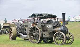 Neil Gough's r ecently r estor ed McLar en Road Locomotive "Gigantic" towing a r eplica Howitzer Gun.
