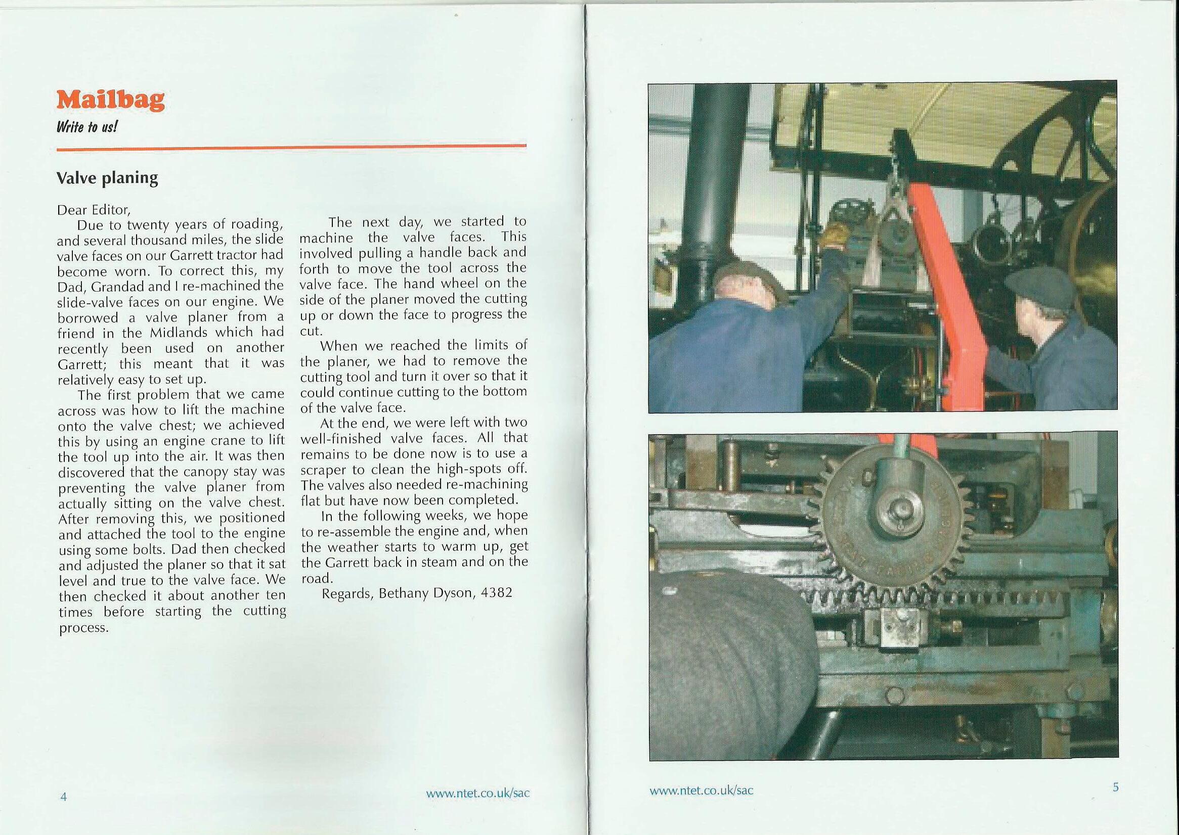 Due to twenty years of roading, and several thousand miles, the slide valve faces on our Garrett tractor had become worn. To correct this, my Dad, Grandad and I re-machined the slide-valve faces on our engine. We borrowed a valve planer from a friend in the Midlands which had recently been used on another Garrett; this meant that it was relatively easy to set up.