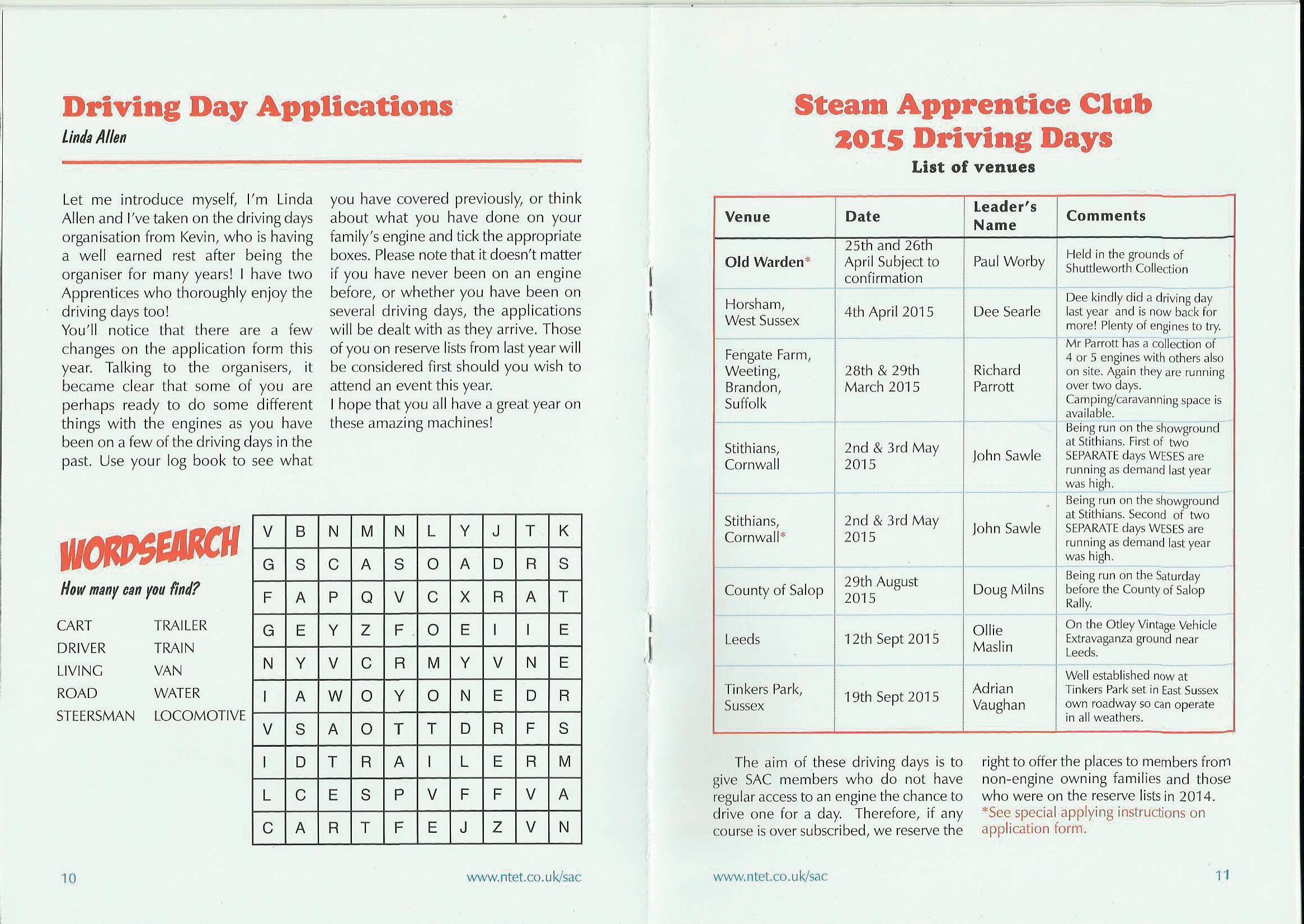 Joining Instructions will be sent two weeks before event and a note posted on the website confirming despatch. Acknowledgement of application does not guarantee a place on a driving day. Non engine owner apprentices and those on reserve lists from 2014 will be considered first.