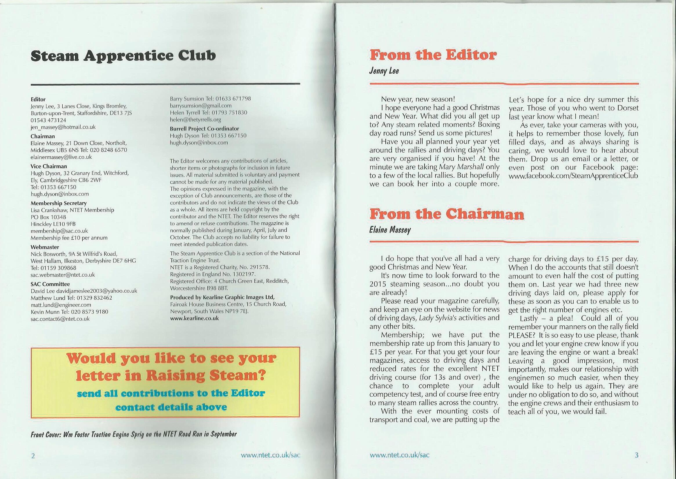 Membership; we have put the membership rate up from this January to £15 per year. For that you get your four magazines, access to driving days and reduced rates for the excellent NTET driving course (for 13s and over) , the chance to complete your adult competency test, and of course free entry to many steam rallies across the country. With the ever mounting costs of transport and coal, we are putting up the www.ntet.eo.uk/sac