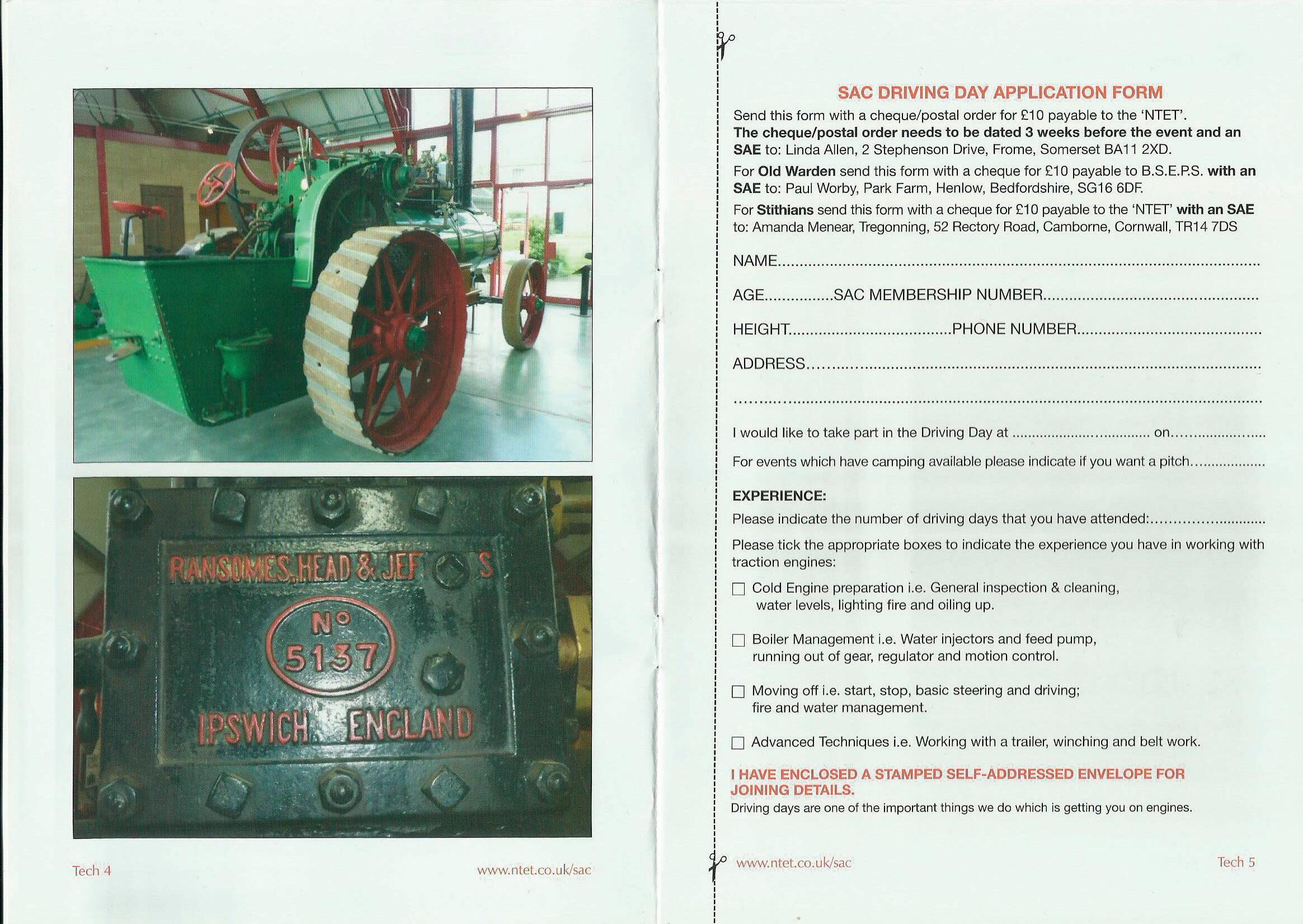 You'll notice that there are a few changes on the application form this year. Talking to the organisers, it became clear that some of you are perhaps ready to do some different things with the engines as you have been on a few of the driving days in the past. Use your log book to see what