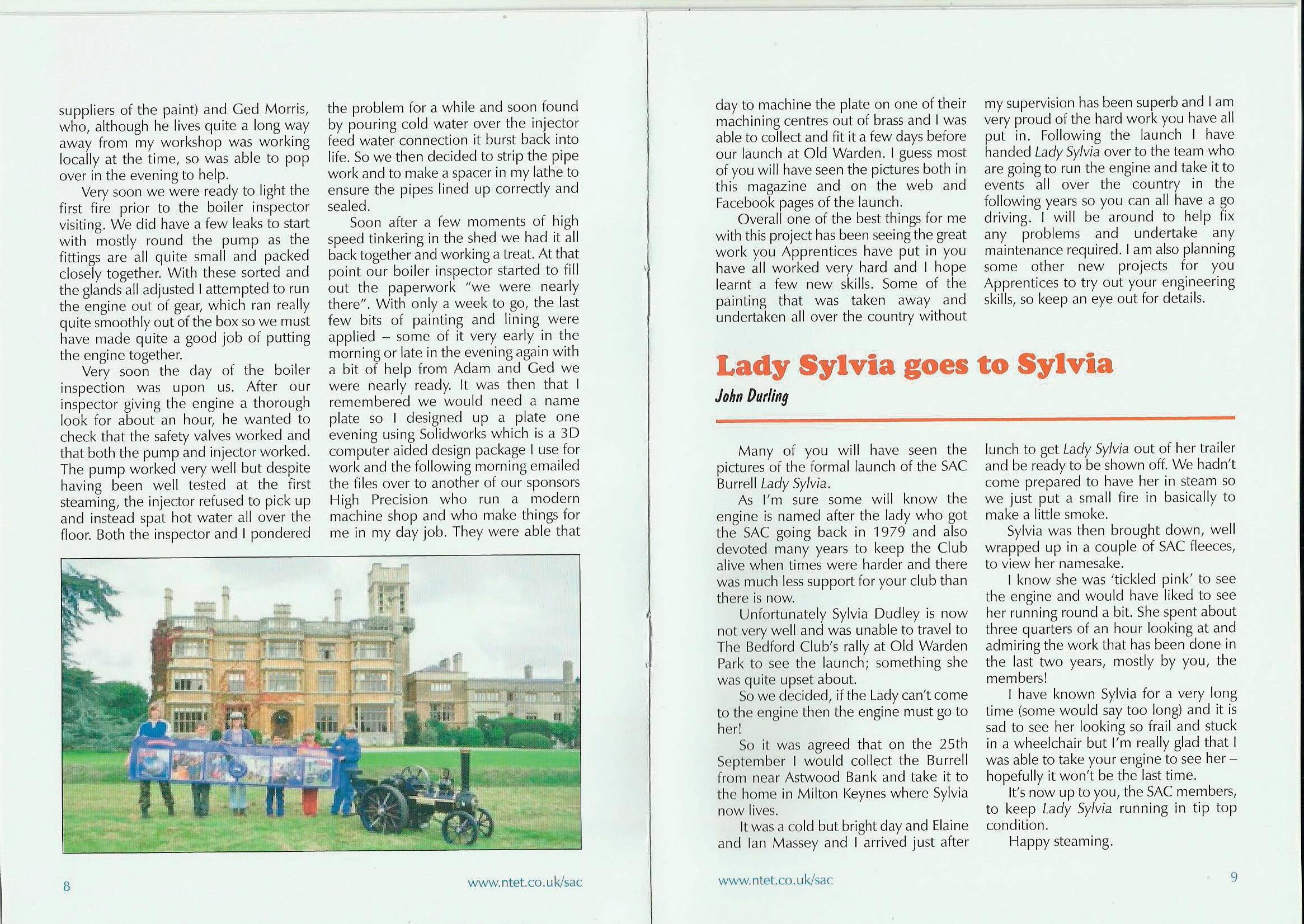 my supervision has been superb and I am very proud of the hard work you have all put in. Following the launch I have handed LadySylvia over to the team who are going to run the engine and take it to events all over the country in the following years so you can all have a go driving. I will be around to help fix any problems and undertake any maintenance required. I am also planning some other new projects for you Apprentices to try out your engineering skills, so keep an eye out for details.