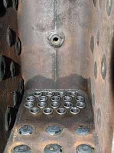 The photo of my DCC boiler (Figure 2) shows the inside of the firebox looking at the front and top. You can see the 18 tubes that go through the barrel from the front of the box. In the centre of the top you can see a bush welded in place, which is where the ‘fusible plug”’is screwed in. This is a safety device that prevents damage to the boiler if the water level gets too low.