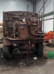 As you can see in the last photos, before we can remove the boiler we need to take all the pipe work off as well as the ash pan and fire bars. The boiler is bolted to the chassis rails on four feet and each foot has two bolts in. The bolts are what’s called ‘fitted bolts’ where the shank of the bolt is the same size as the hole, so the bolt has to be fitted into the hole with a hammer. It is the tight fit that stops the boiler moving around and cracking pipes and fittings.