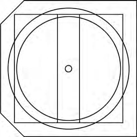 Upper layer showing cut back corners to allow wheels to pass and position of turntable ring.