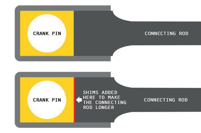 For the purposes of the calculation and for ease of getting an answer I have assumed everything else is at 70F and does not expand hopefully the reason why will become clearer later. The expansion was more than enough to cause the knocking sound if the length from the centre line of the crankshaft to the back of the piston is set incorrectly (See fig 2). To adjust the length between the centre line of the crankshaft and the back of the piston on the Aveling there are shims between the end of the