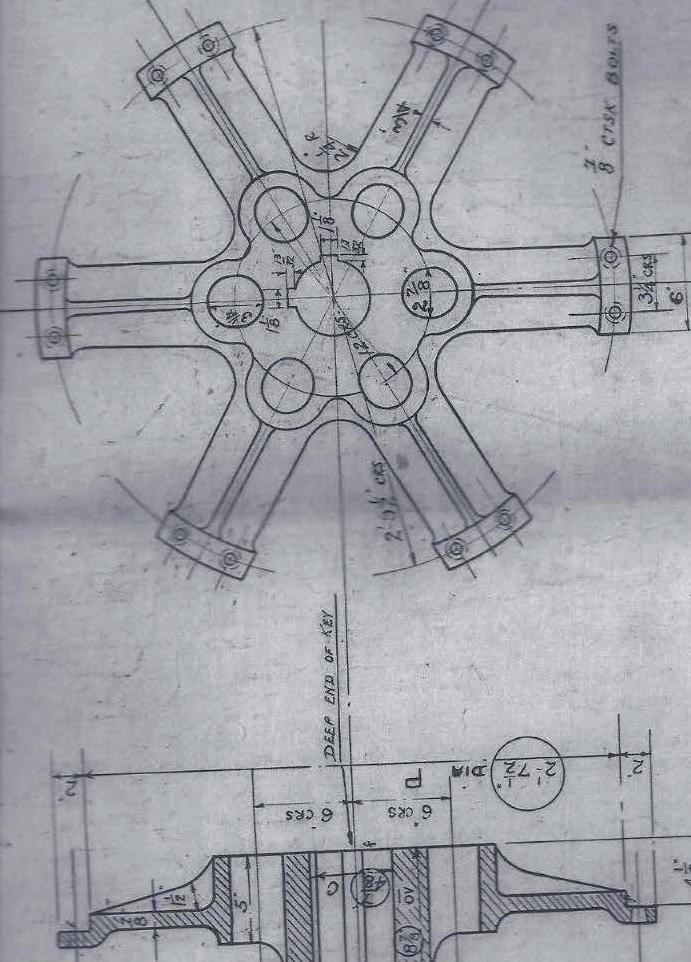 So what you have to do is calculate how much the cylinder moves ‘away’ from the crankshaft. You can properly measure it if you have an extremely long barrel, but you wouldn’t get it down to an accuracy of a few thousandth of a inch. I therefore measured from the centre line of the crankshaft to the end face of the cylinder, see Fig 1. I then looked up a chart the temperature of the water and hence the temperature of the barrel at 140 p.s.i. which I found to be about 353 F or 178C. The next thing to find out was the coefficient of expansion for steel, which is 0.000016 in/in F or m/m C.
