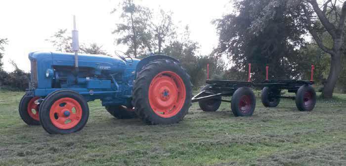 brakes working having made some of the missing bits. Whilst undergoing restoration I was able to discover some of the history attached to the trailer. It was built in Scotland from parts of another trailer possibly a Dyson trailer or dray of approx 1930’s age. There is a similar trailer which still survives in Scotland. The axles wheels and brakes all come from a donor trailer. The top frame looks like it comes from another timber trailer and has been cut down to suit. I hope to find a large tree trunk this winter and to load and move on the road with steam power.