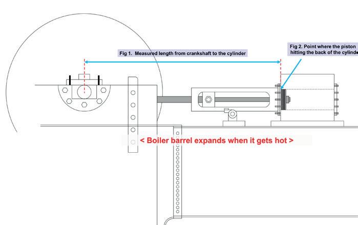 when at full pressure as mentioned in last magazine, reaching nearly 200C when at 200psi, this causes everything to expand, including the length of the barrel of the boiler on which the cylinder sits that houses the piston.