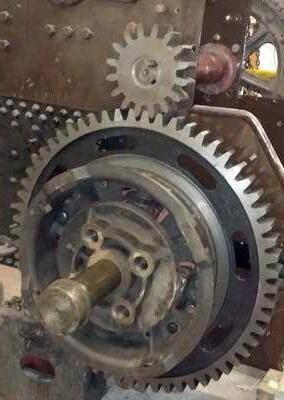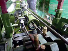 Over a period of four years the firebox, half the backhead, water tank, drive gears, piston rings, piston rods, valve rods, main and big-end bearings, tubes, rear-axle bearings were replaced, the water sprayers for the rolls refitted, the hind roll re-riveted, extra lubrication added, gauge-glass cocks refurbished by Alan Wingfield and the pressure gauge refurbished by the original makers, Budenberg. The boiler pressure was also raised to the original 180 psi, it had been lowered to 150 psi during its working life [although the last onemade had a working pressure of only 140 psi when new]. This rebuild was carried out mainly by Mark and Geoff Wingfield.