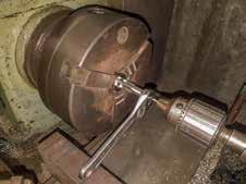 The first job was to mount the valve in the lathe, machine the flange to remove the remains of the broken thread, then drill a hole ready for the new threads.