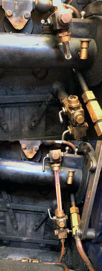 seals, the block connections to the boiler and blow down valve. Also check that the sight glass works and all of the water/ steam passages are clear by a full ‘blow down’ procedure. Then when the engine is used for the first time and everything warms up and the pressure increases