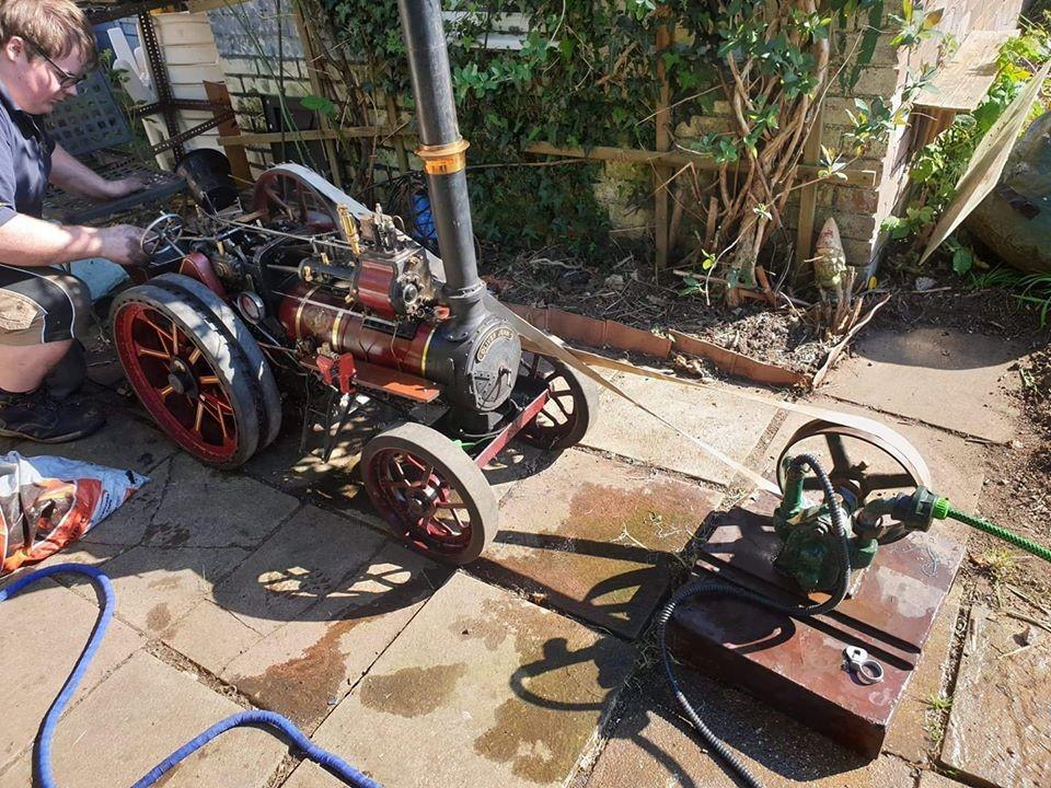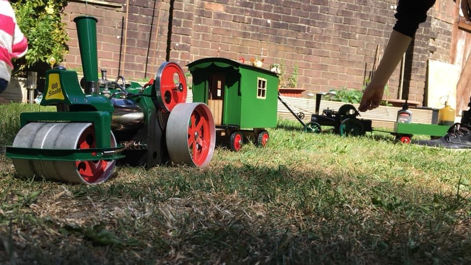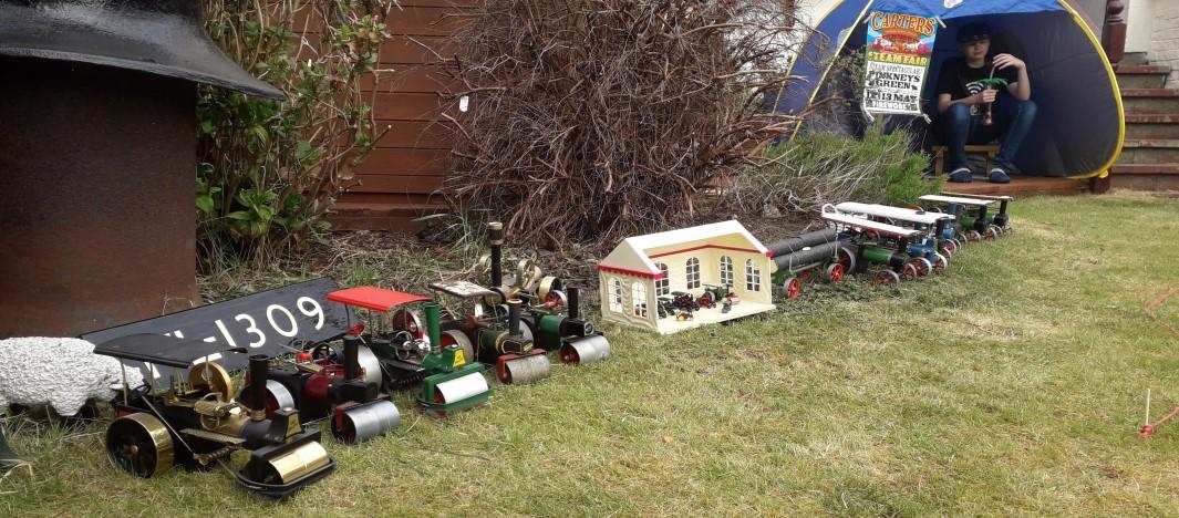 couldn't make the rally in steam. We had a beer tent, a hook a duck stall and Mechanical Music Radio playing all day to give us the rally atmosphere. Between us and neighbours, we managed to show 22 engines in our garden, steam 7 of them and used my Wilesco traction engine to make steam for an old mill engine model I had bought last year. Rally food was made, starting with a cooked breakfast, then bacon rolls and chips and ice cream throughout the day. We had 12 neighbours come for a look over our fence, and even sold four rally mugs for charity. At the end of the day, we played the special Dr Busker songs on the internet and took some of my Matchbox engines for a walk round town in place of
