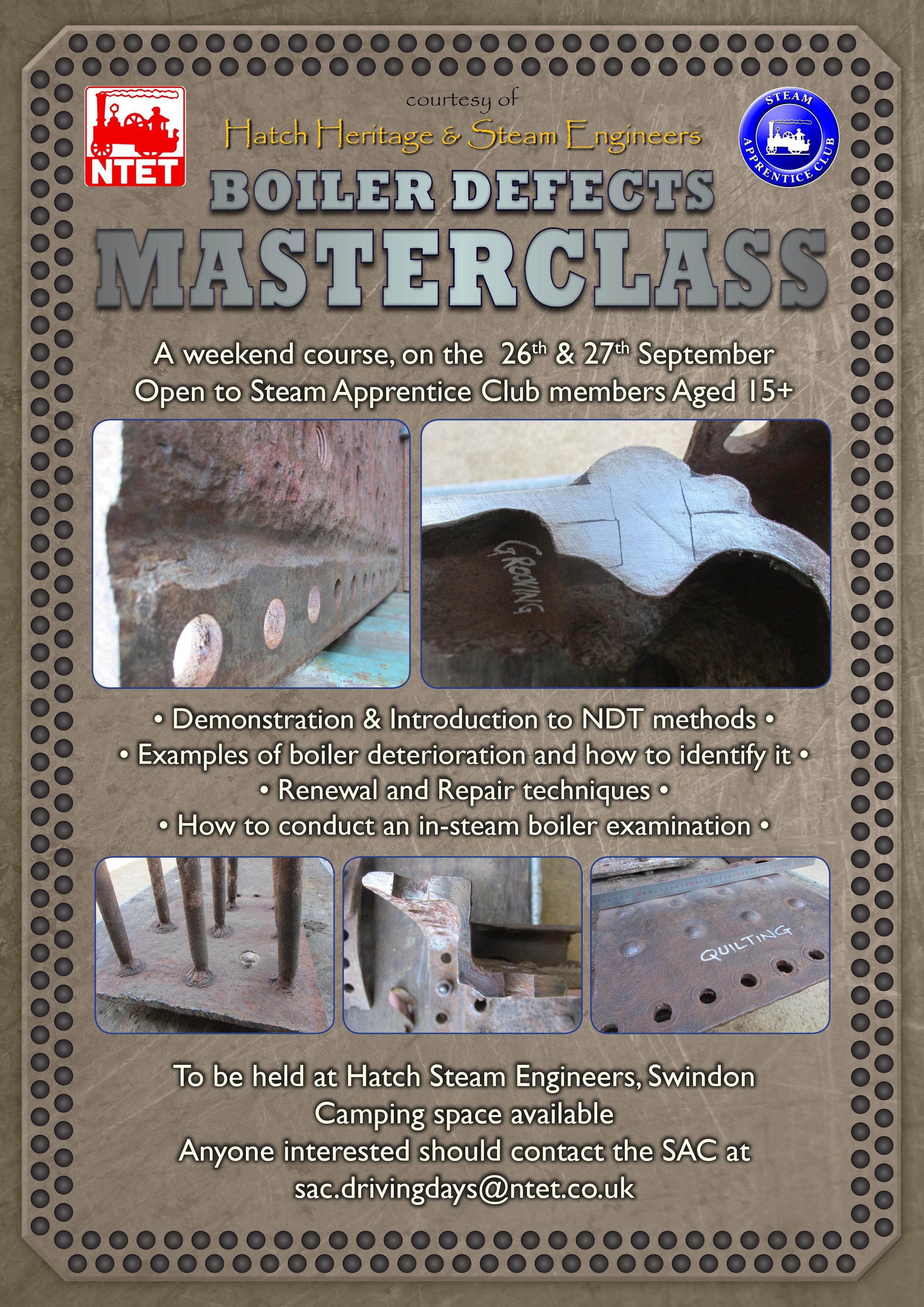 In the last edition of this magazine, you may have seen the Boiler Defects Masterclass. If you think you might be interested in taking part, please contact us on sac.drivingdays@ntet.co.uk. Check out our website for more information about the course. It’s a fantastic opportunity for anyone considering a career in boiler maintenance or inspection.