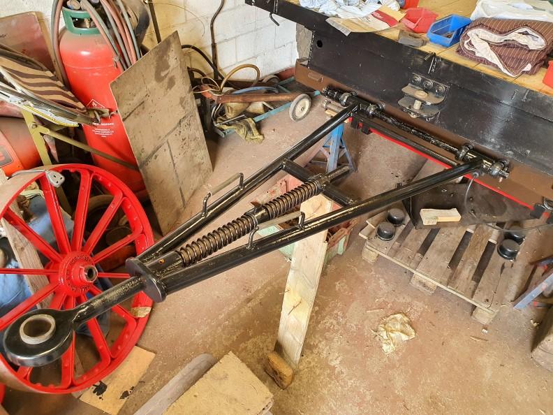 In the Bosworth workshop, lockdown has meant I've been able to do all those little 'one-day' jobs that never seemed to get done. We've been refurbishing our traction wagon, giving it a re-paint, new floorboards, etc. It's existing drawbar has had a few repairs, so I took the opportunity to build a new sprung drawbar for it.